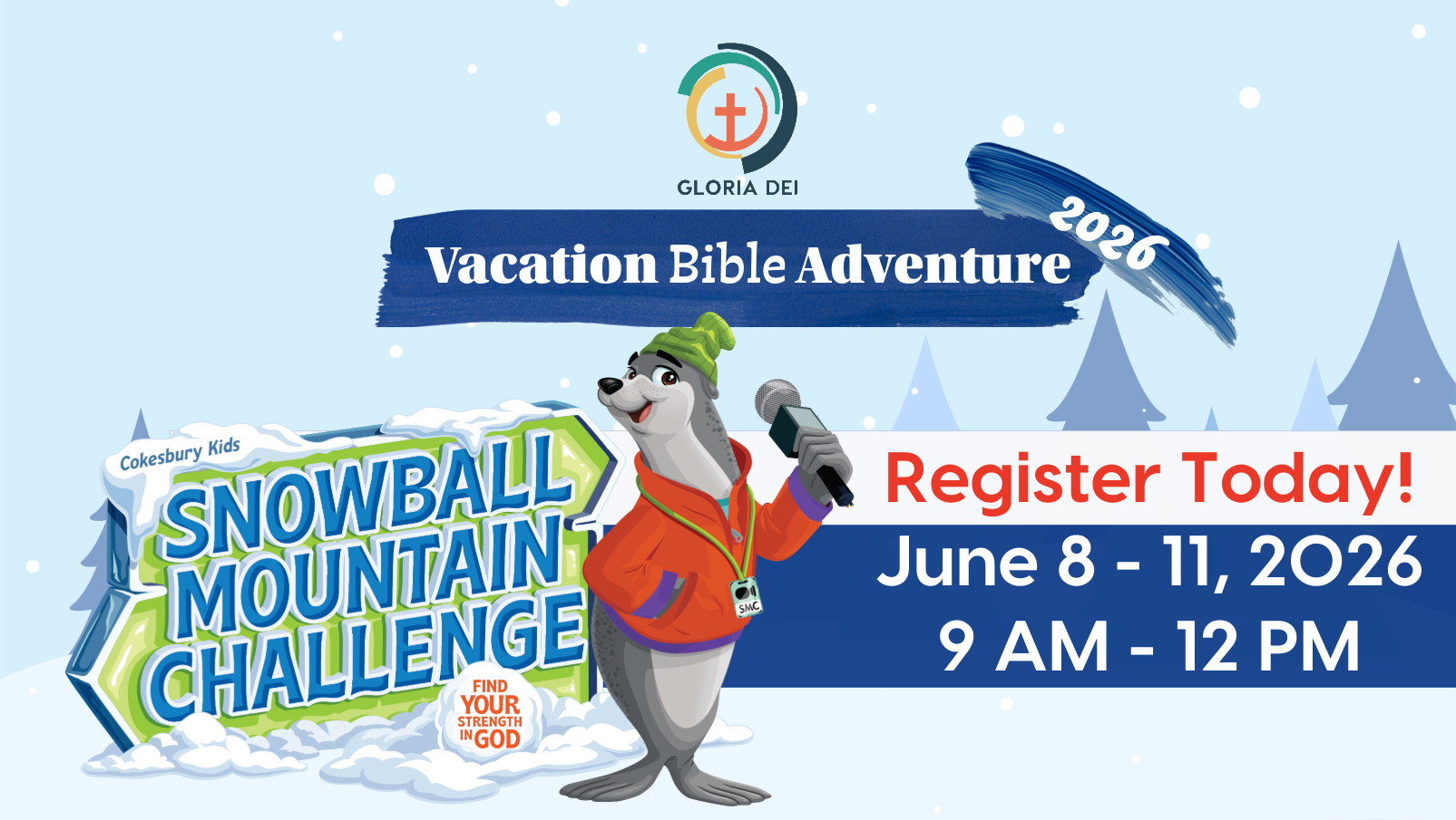You can pay online at gloria-dei.com/giving by selecting “Vacation Bible Adventure” in the drop-down menu, or bring/mail a check to the church. No one will be turned away because of an inability to pay.
